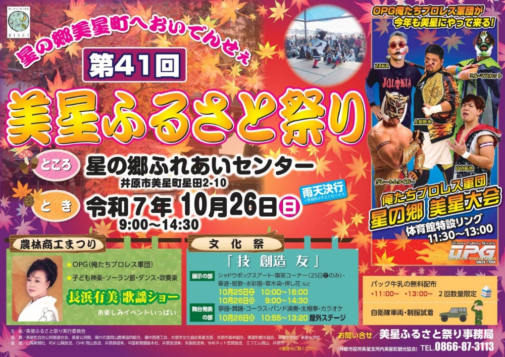 2025年10月26日(日)第41回美星ふるさと祭り星の郷ふれあいセンター観覧無料OPGのリングにて歌わせていただきます