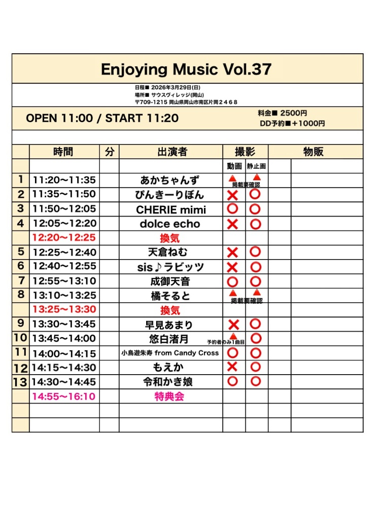 時間■OPEN 11:00 / START 11:20