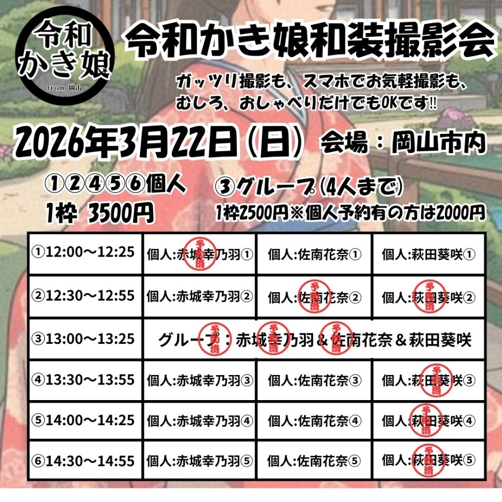 3/22(日)岡山市 和装撮影会